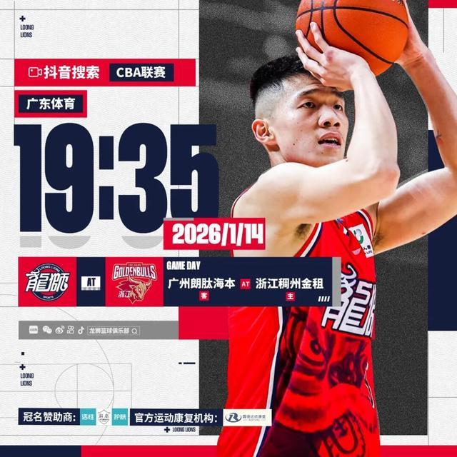 龙狮篮球俱乐部2026-01-13 17:23:022025-2026赛季CBA联赛常规赛 第十五轮 - 客场挑战浙江⏰2026年1月14日 明晚 19:35广州朗肽海本(客) — 浙江稠州金租(主)直播:抖音搜索 CBA联赛,广东体育连场硬仗,浙江客场双战启程!...