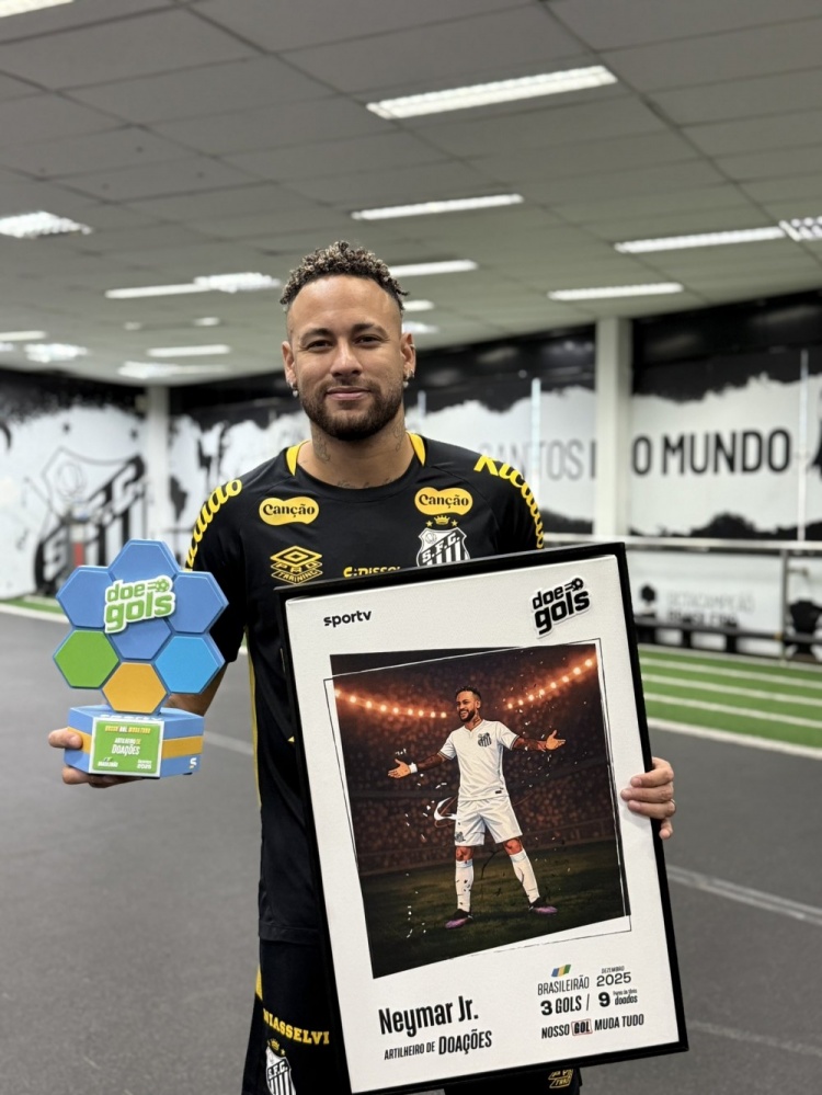 内马尔去年12月巴甲打进3球,荣膺巴甲12月最佳射手,他领取了Doe Gols 奖,并向处于社会弱势的儿童和青少年捐赠9双运动鞋。